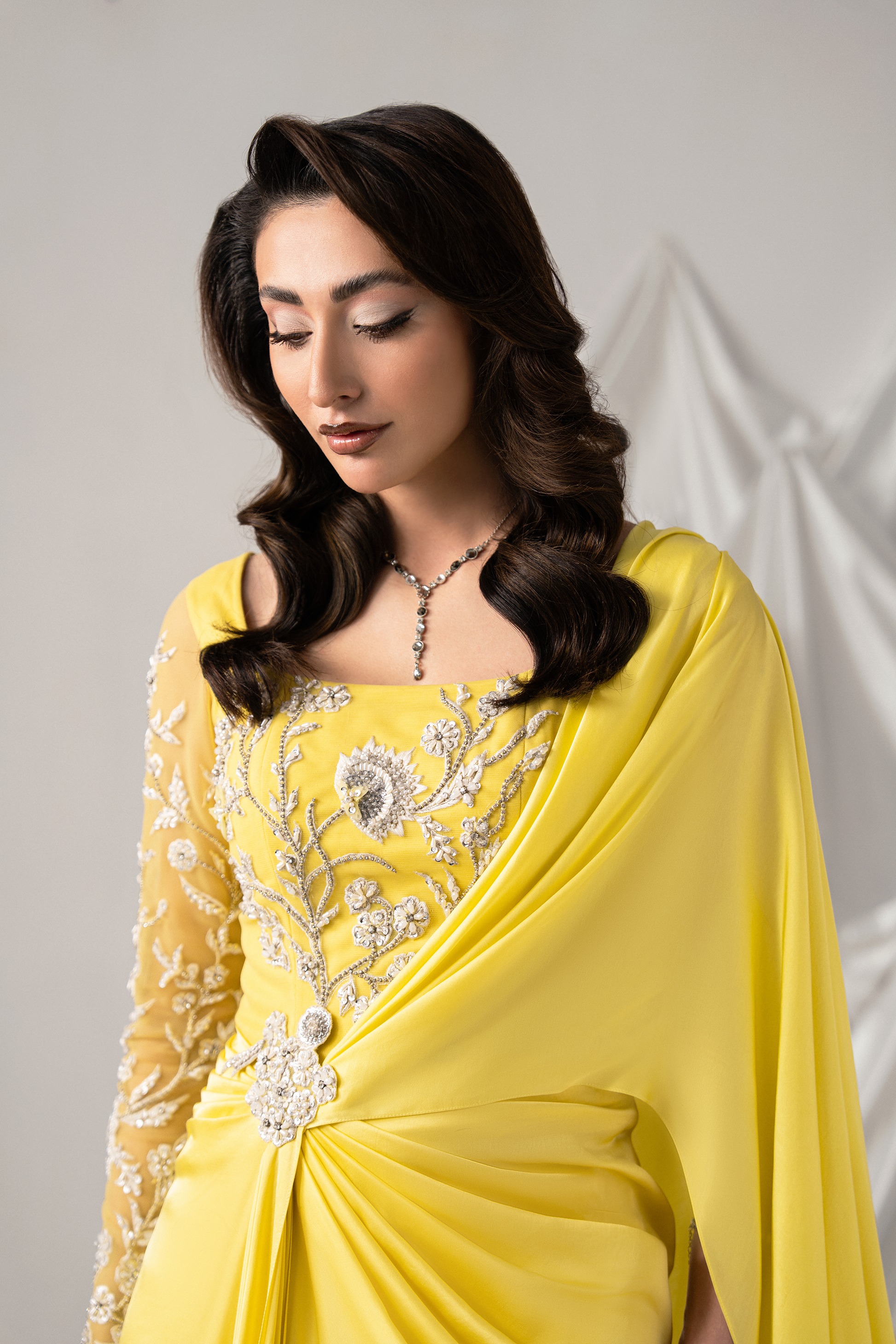 Crafted from premium net and charmeuse silk, this one-piece outfit reflects timeless luxury with a modern winter touch. A perfect blend of softness, flow, and elegance from our Winter Luxury Pret collection.