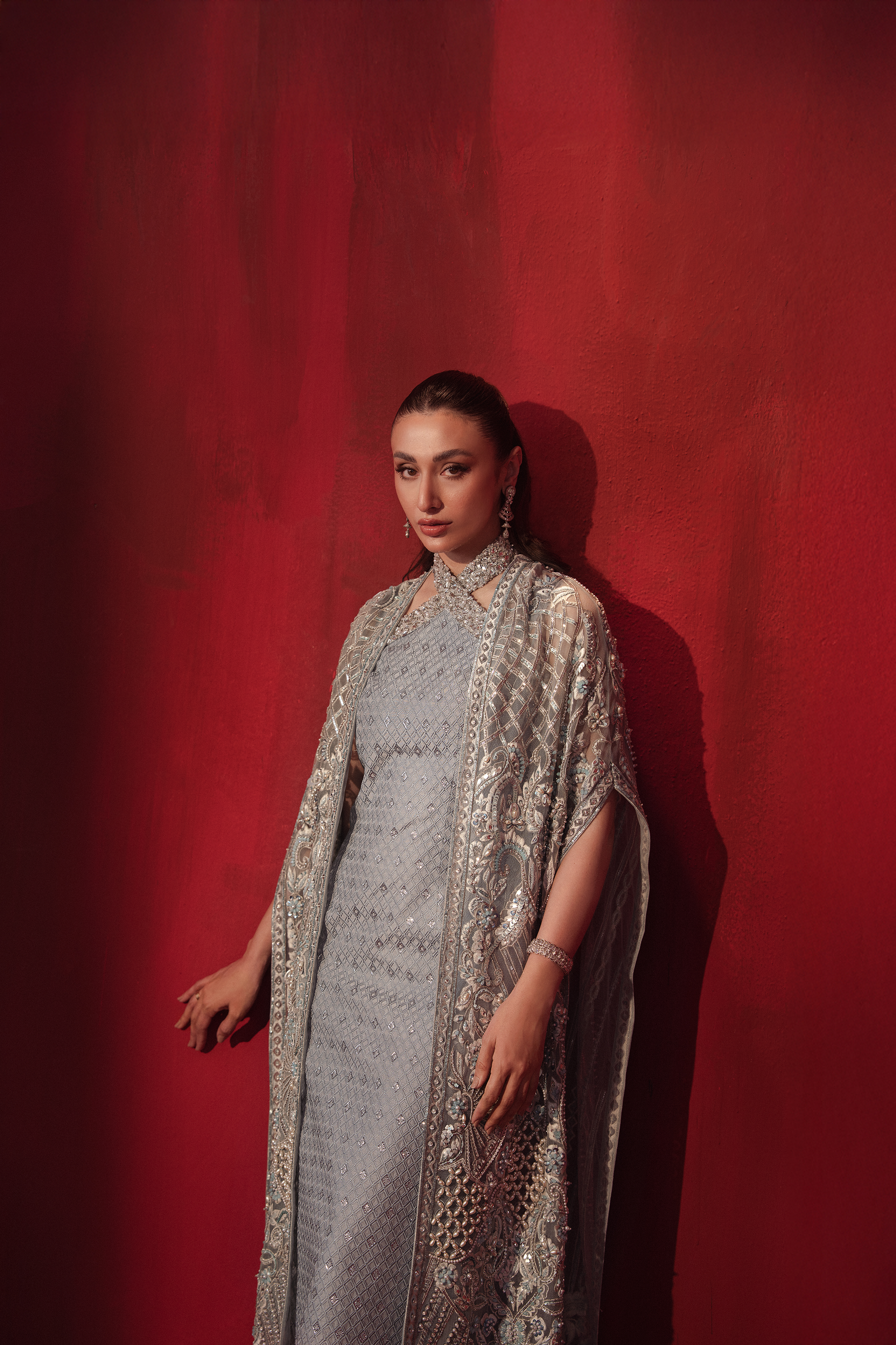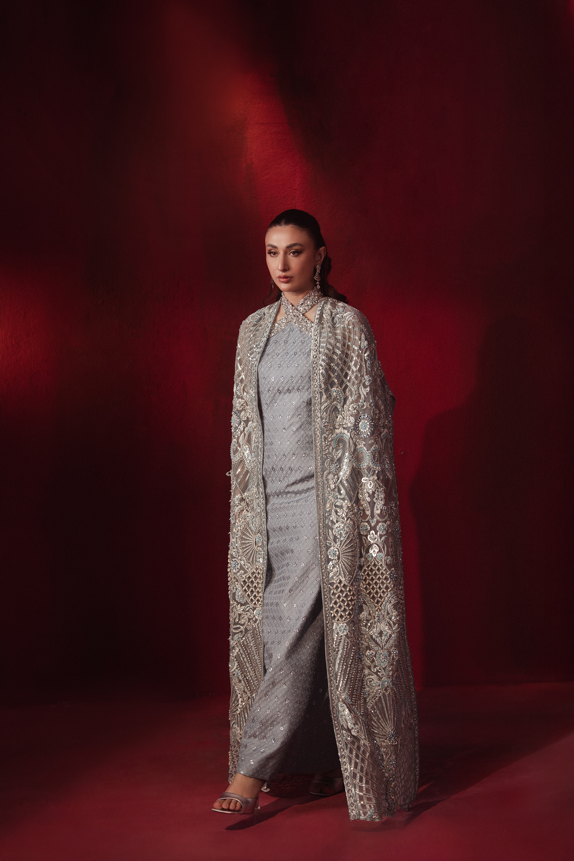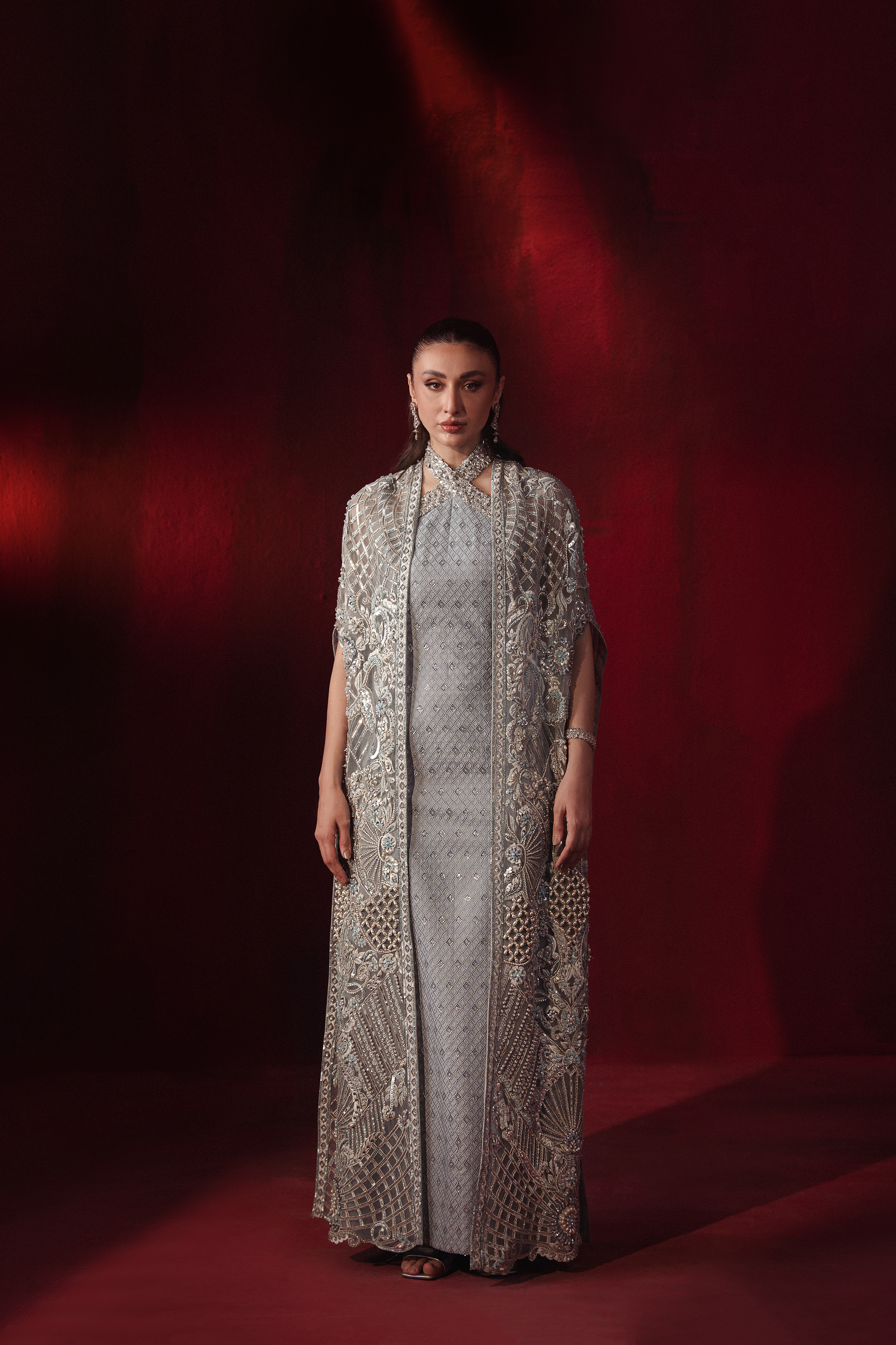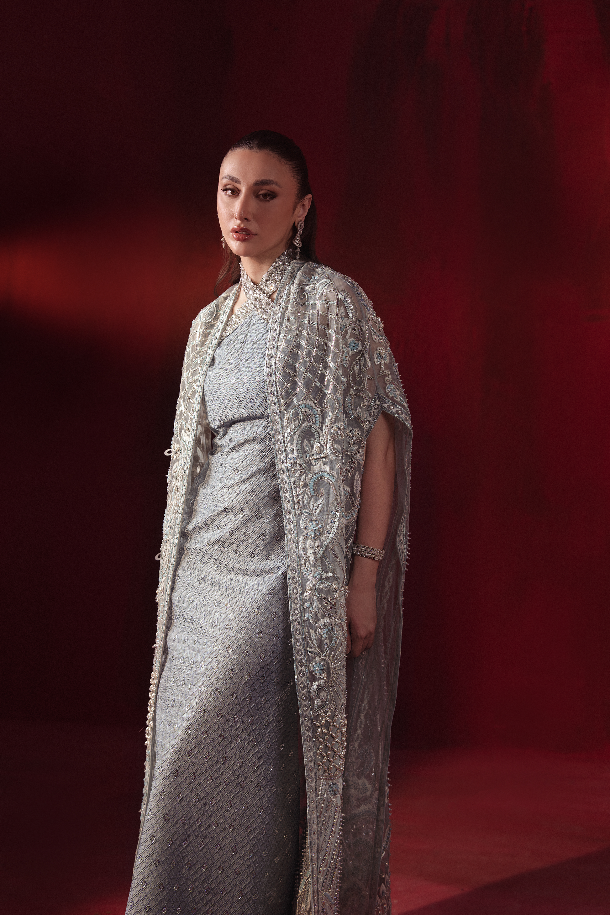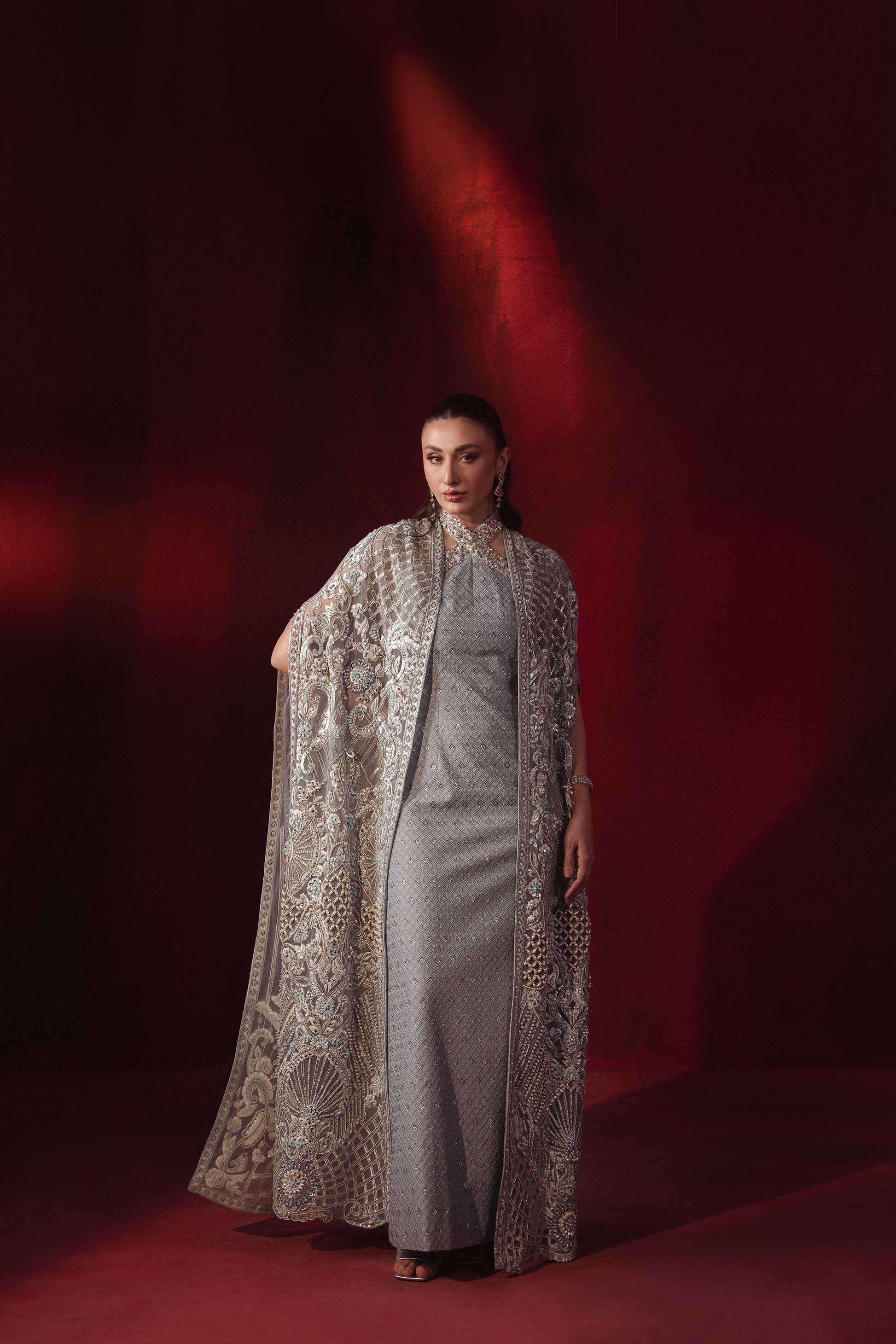 A chic blend of sophistication and modern allure, this 2-piece set is tailored from premium Korean Raw Silk. The halter neck inner exudes contemporary elegance, while the flowing cape adds a graceful touch, making it the perfect choice for refined soirées and formal gatherings.